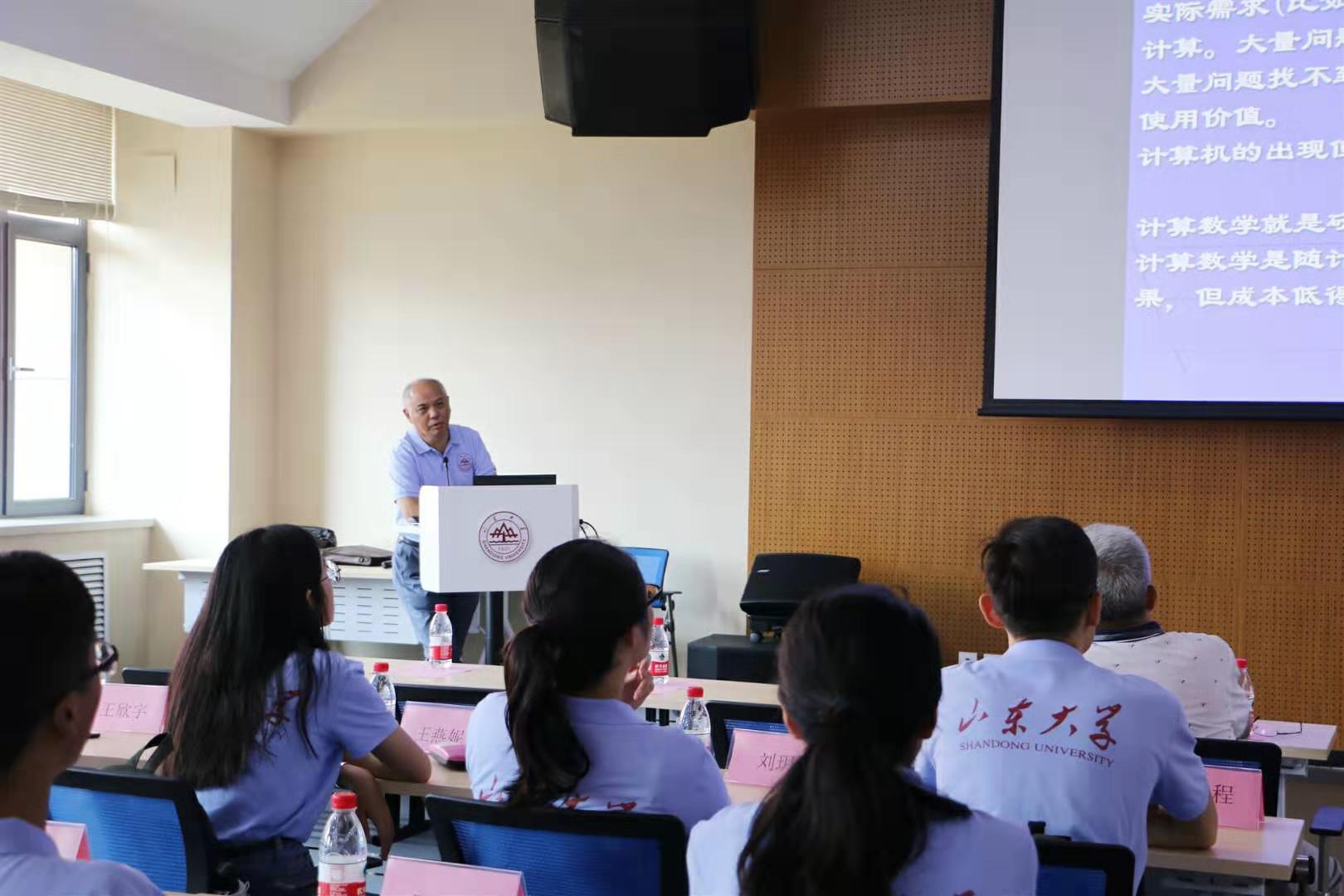 为加深营员对中心各分支学科的认识,14日上午中心举办了学术报告会。由栾贻会教授、芮洪兴教授、李国君教授分别对概率统计、金融数学、计算数学和运筹的研究方向进行了系统介绍。栾贻会教授指出了概率统计、金融数学的最新研究方向,指出金融数学的目标是建立国家标准,要基于非线性期望进行基础数学理论及其交叉学科研究。芮洪兴教授对计算数学的研究领域进行了介绍,就不确定性海洋数学问题如何进行建模、如何对其数值方法和理论进一步研究做了讲解。李国君教授介绍了图论的经典理论,并结合自己团队的最新研究成果,介绍了如何设计和引入新的数学模型,突破算法瓶颈。通过学术报告会,营员们不但充分了解了交叉中心各个专业的学术优势,更激发了营员的学术热情。