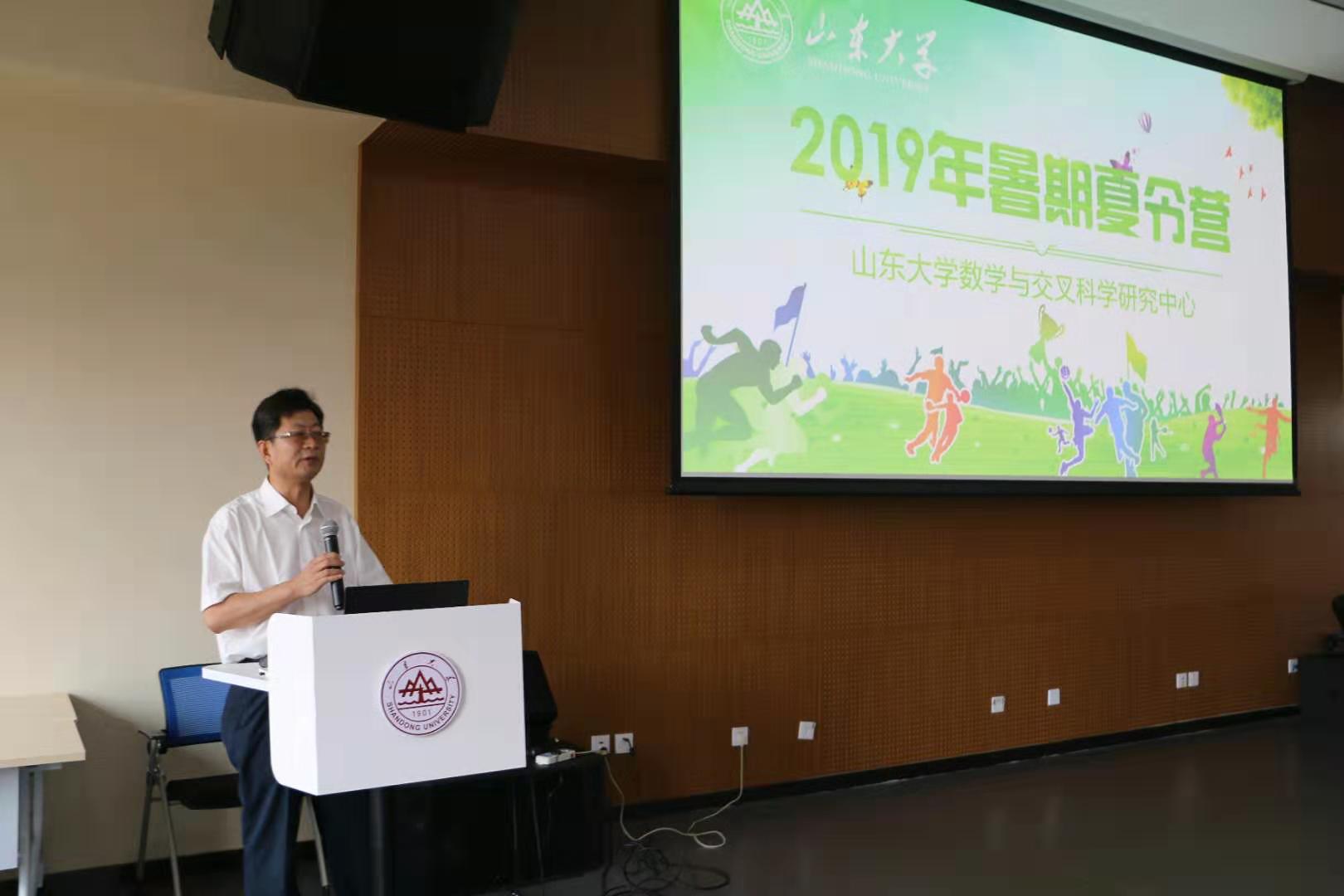 13日上午,开营仪式在华岗苑北楼510举行。中国科学院院士、中心主任彭实戈,研究生教育办公室主任李德春,中心常务副主任赵永新,中心副主任栾贻会等专家学者以及全体营员出席了开营仪式。开营仪式由赵永新主持。首先,彭实戈院士结合自己的科研经历,就学科交叉给出了自己的独到见解,他指出整个科学关心的重要问题都在学科交叉中产生,并以倒向随机微分方程的应用前景为例,介绍了Feynman-Kac公式在金融中的应用。彭实戈院士强调做数学如同做故事,要善于抓住关键地方,学会如何做好学问、怎样做好事情,并欢迎营员加入交叉中心,让新的故事从交叉中心开始。随后,李德春主任发表讲话,他对青岛校区的师资力量、学科建设、人才引进、招生计划做了详细介绍,对近几年青岛校区新增多个交叉学科给予高度肯定,交叉学科的增设促进了学科交叉融合发展,加快了建设学术创新校区的步伐。最后,栾贻会教授对中心的筹建过程、中心概况、研究方向、运营机制、发展规划等方面做了详细的介绍,进一步加深了营员对交叉中心的认识。