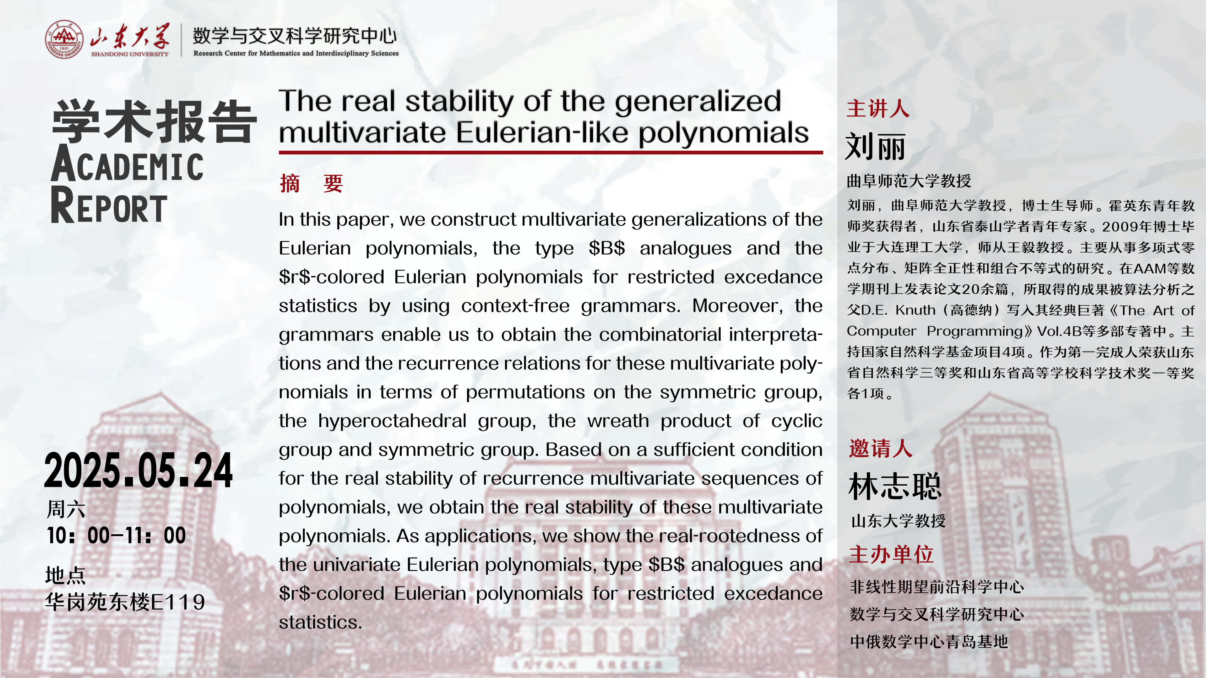 下一篇:讲座预告 | On the joint distributions of succession and Eulerian statistics