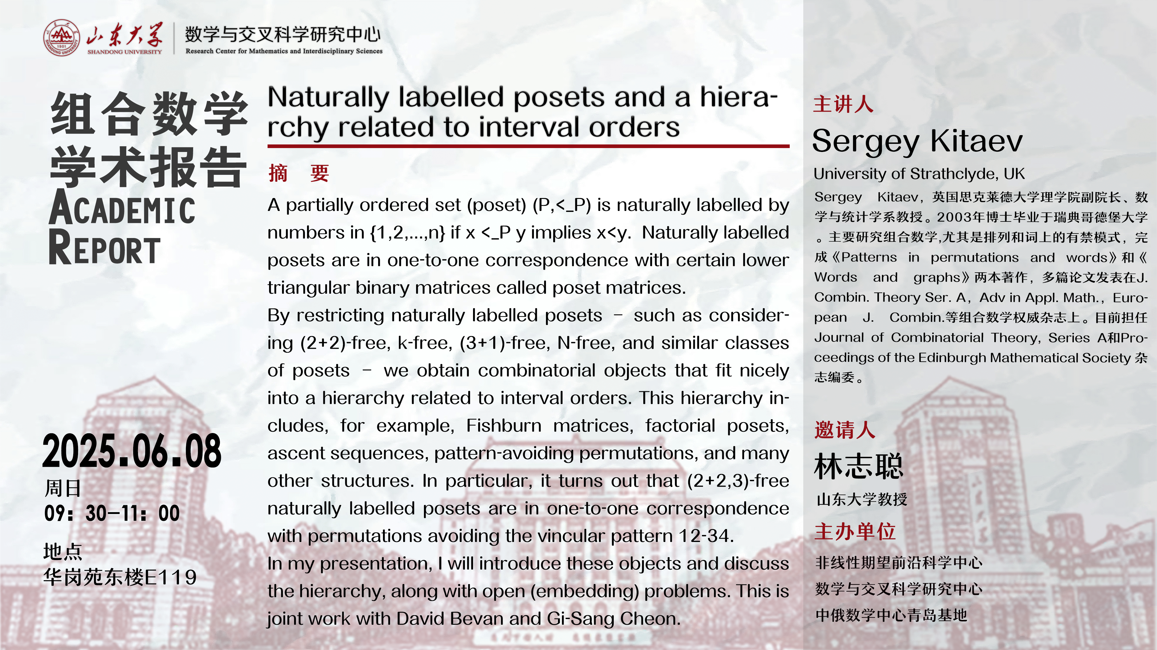 下一篇:讲座预告 | The real stability of the generalized multivariate Eulerian-like polynomials