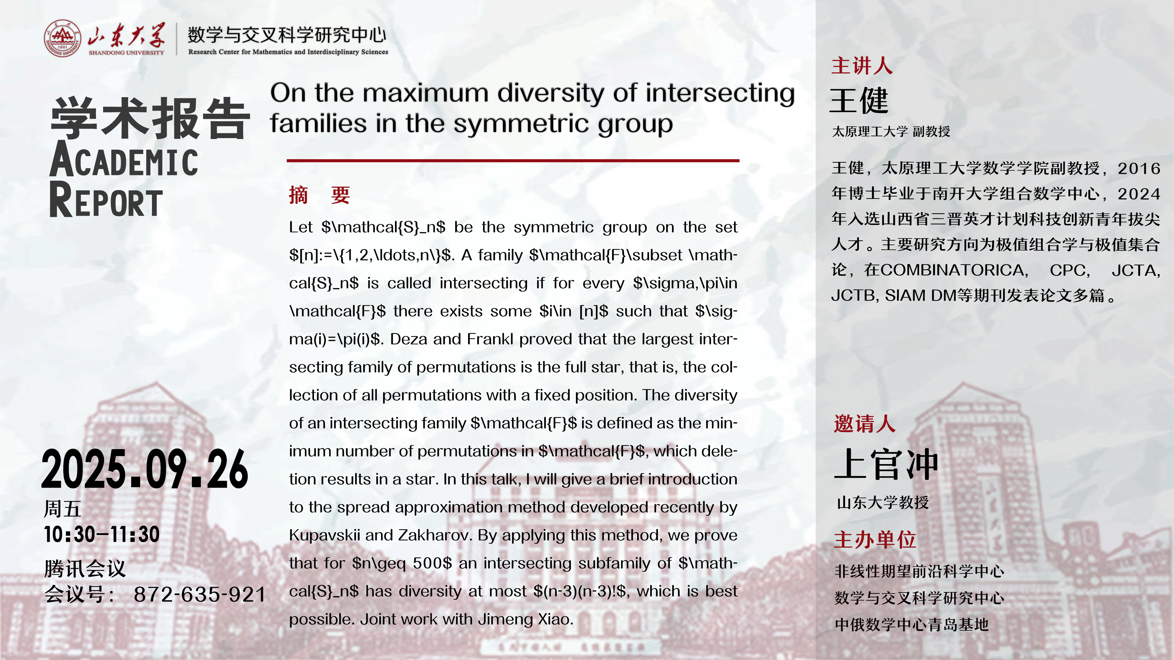 上一篇:讲座预告 | An introduction to Macdonald polynomials
